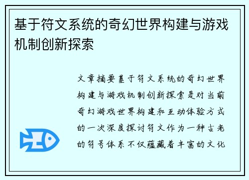 基于符文系统的奇幻世界构建与游戏机制创新探索
